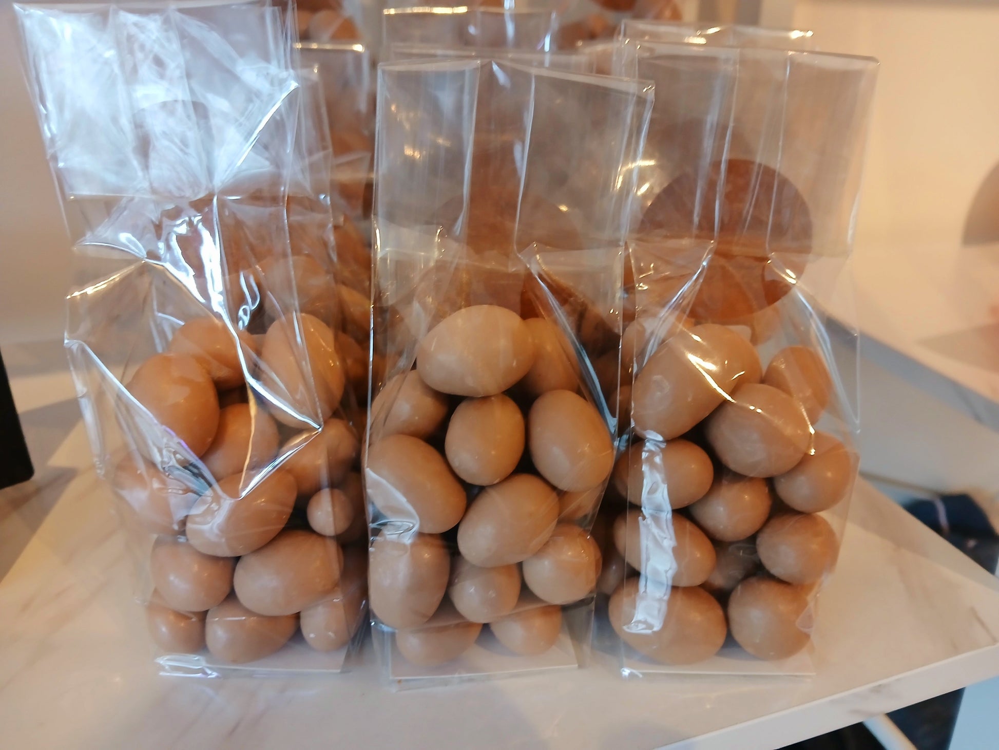 Amandes roties enrobées de chocolat blanc praliné à l'érable (100g)